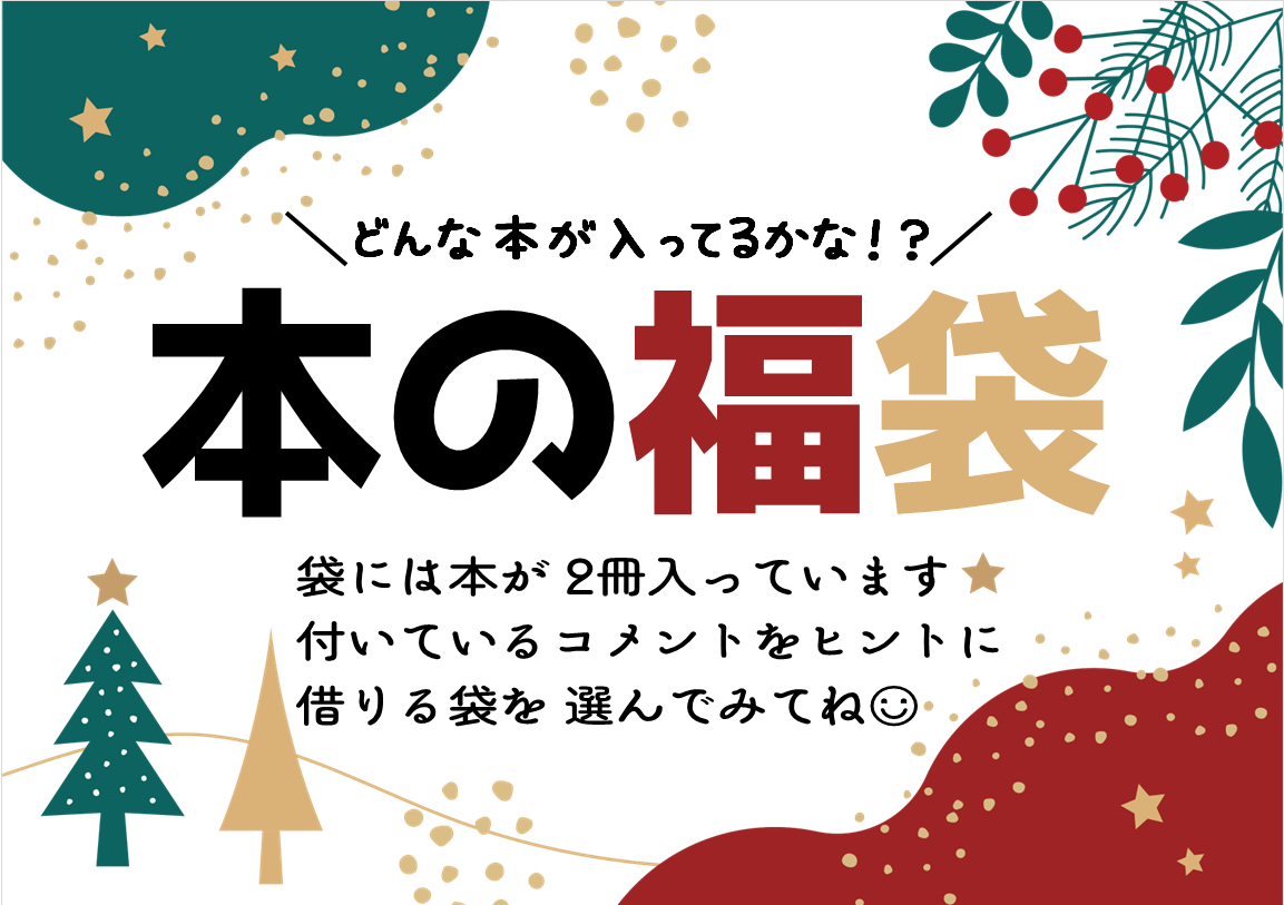 中身が見えないように包んだ袋の中に、本が2冊入っています。袋についているコメントをヒントにして、借りる袋を選んでください。どんな本が入っているかは、借りてからのお楽しみです。